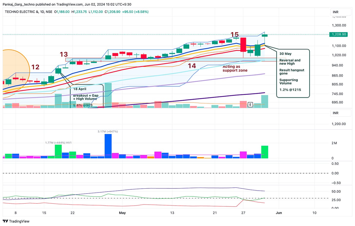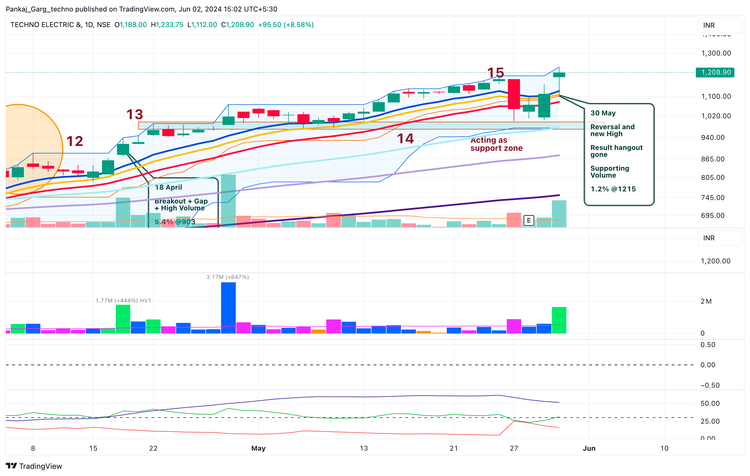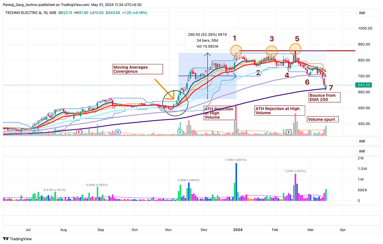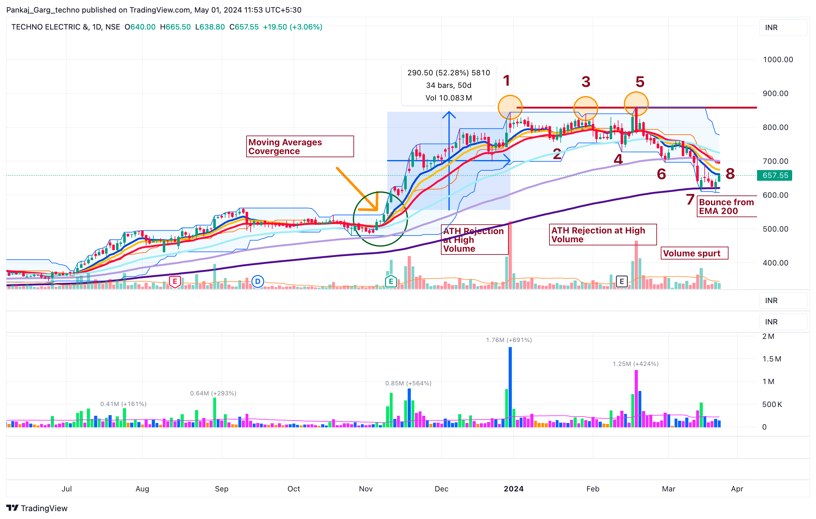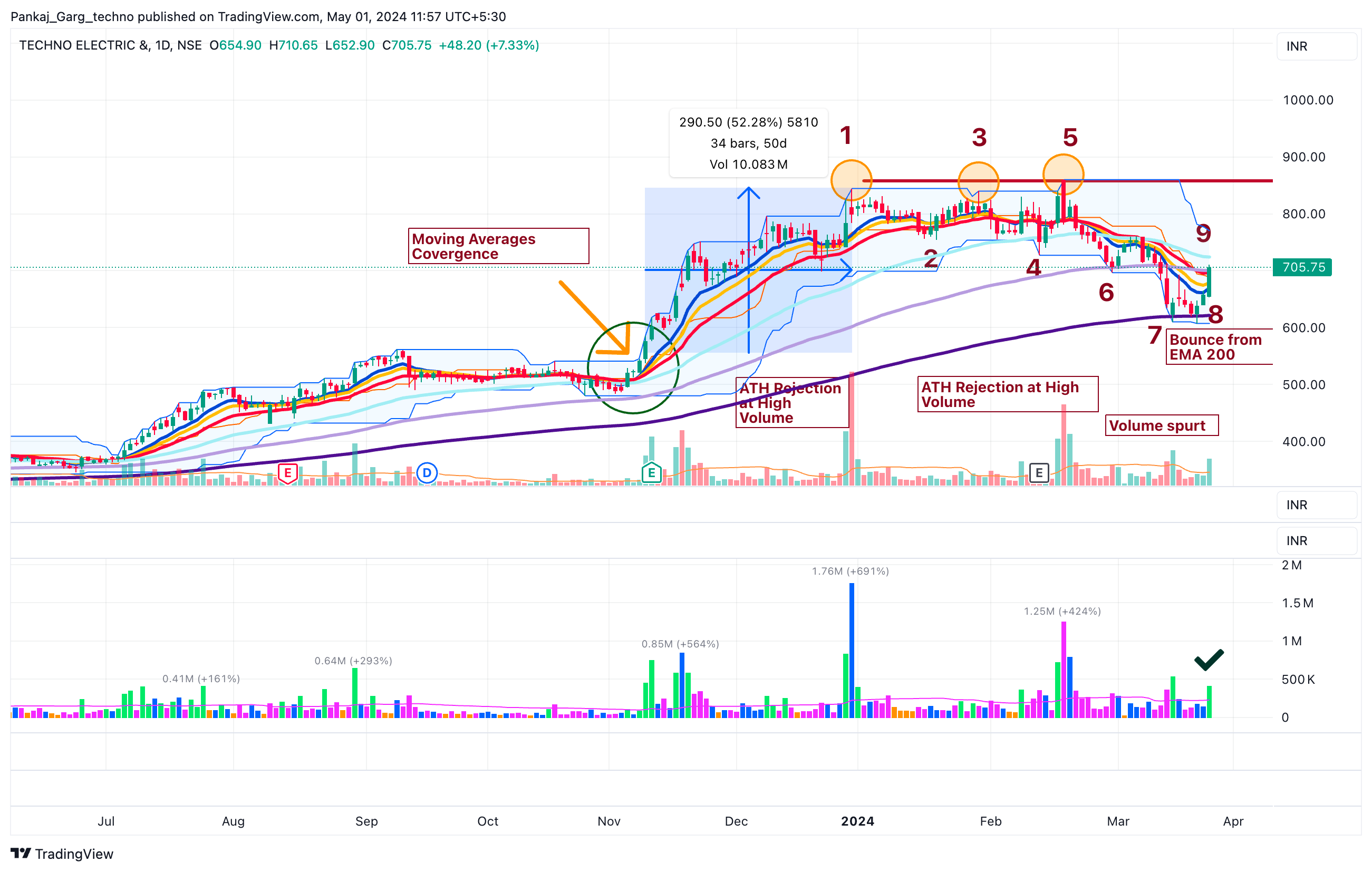 After the ATH attempt TECHNOE took support at EMA 13. A sharp bounce from EMA 13 on 16th April.