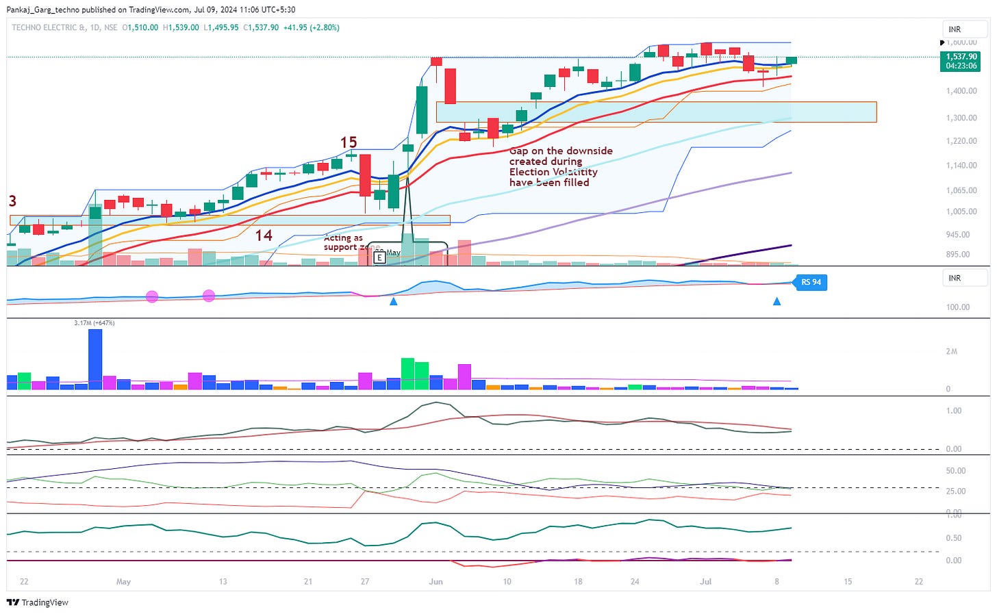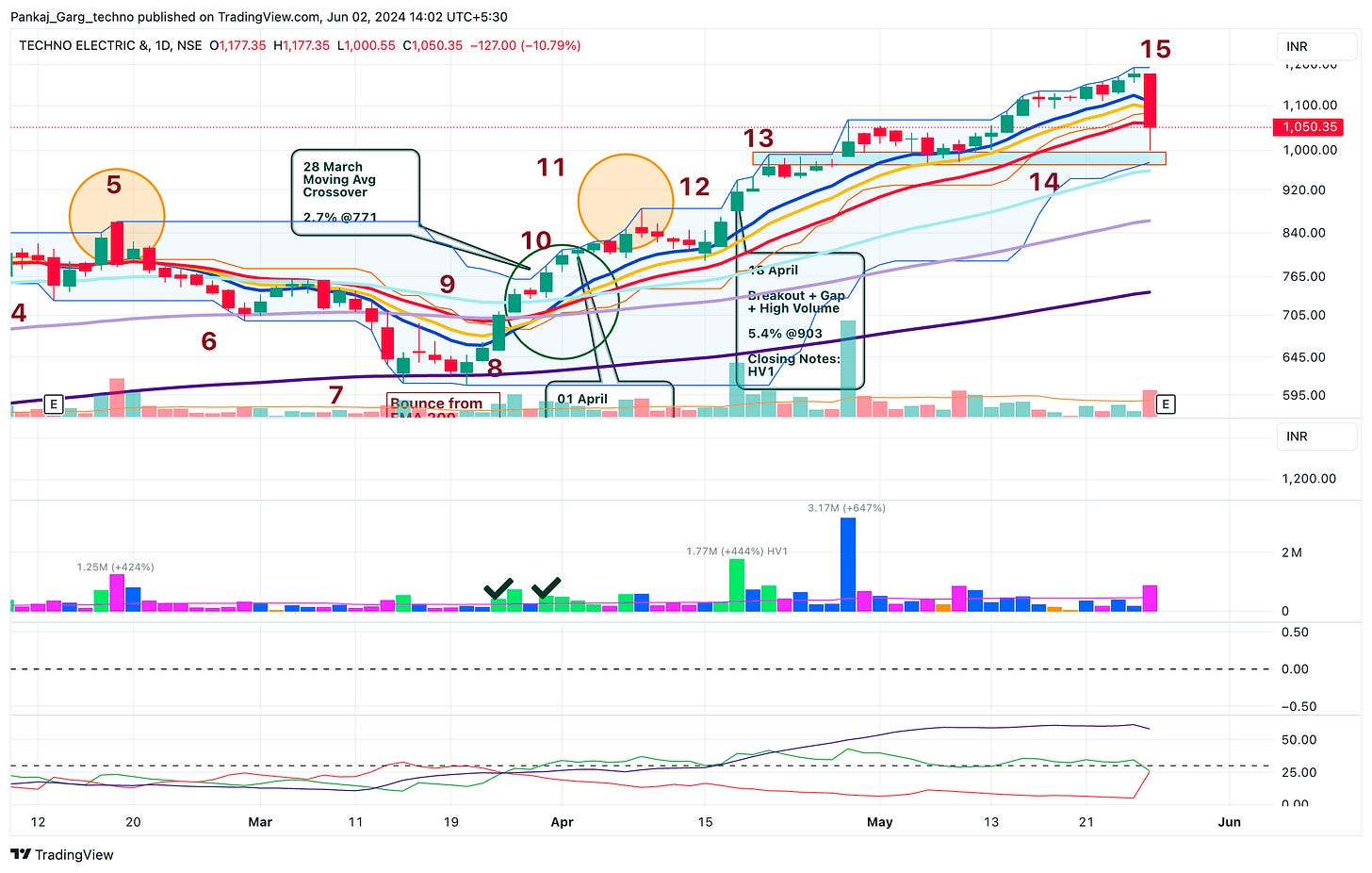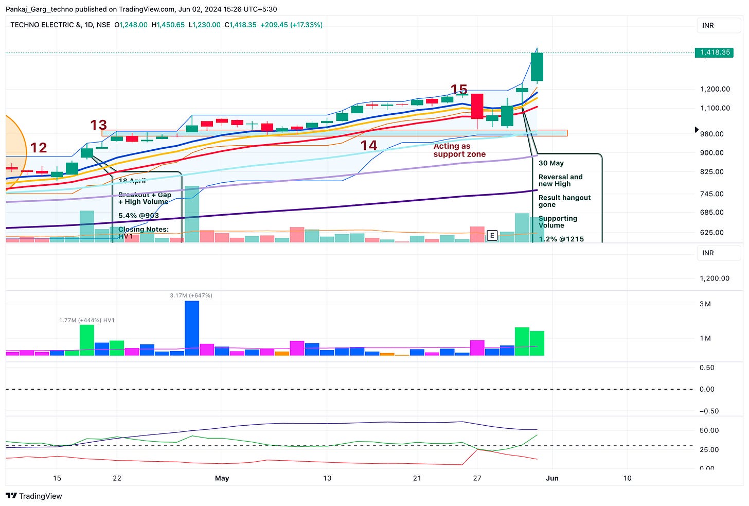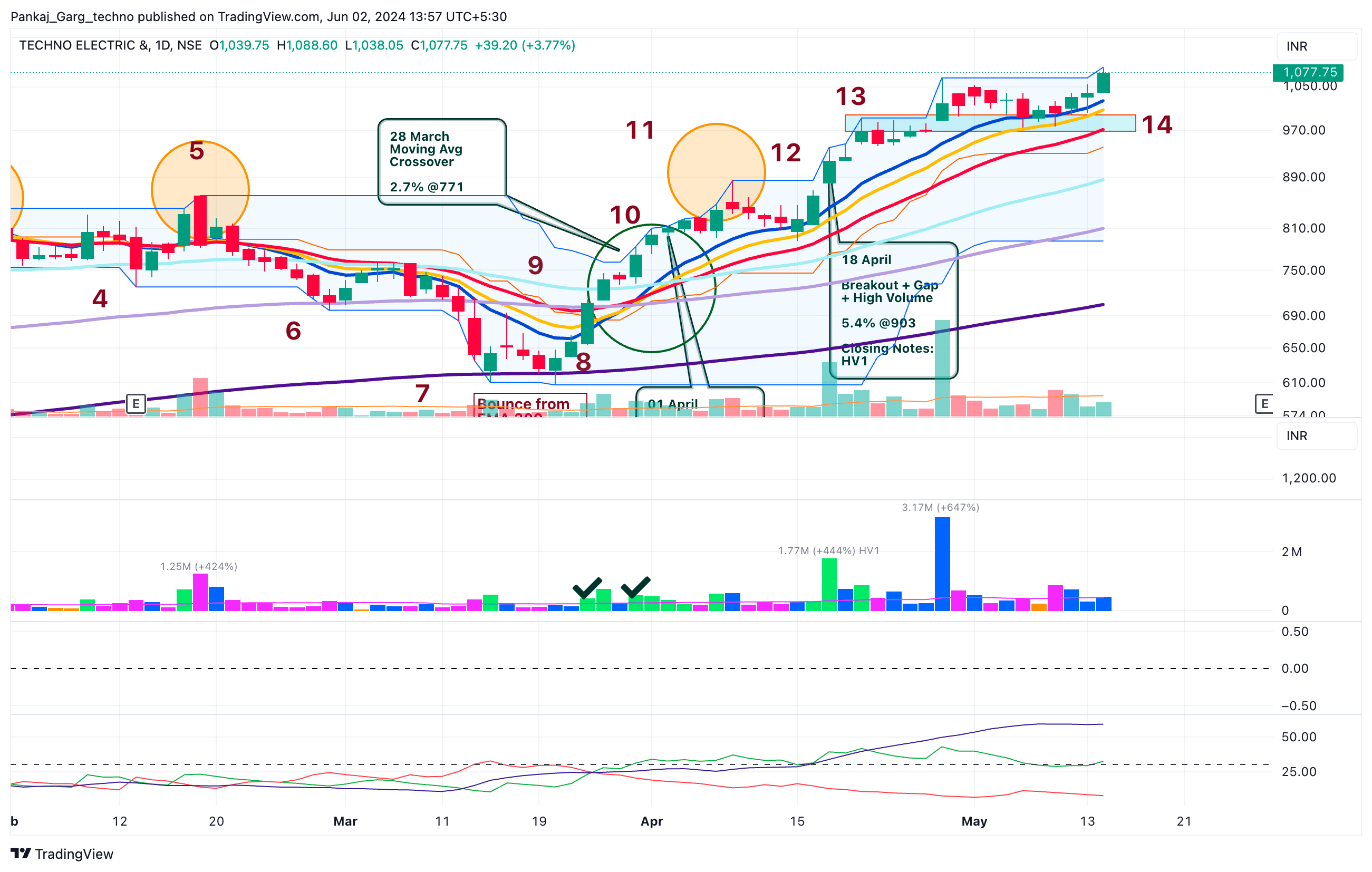 After the ATH attempt TECHNOE took support at EMA 13. A sharp bounce from EMA 13 on 16th April.