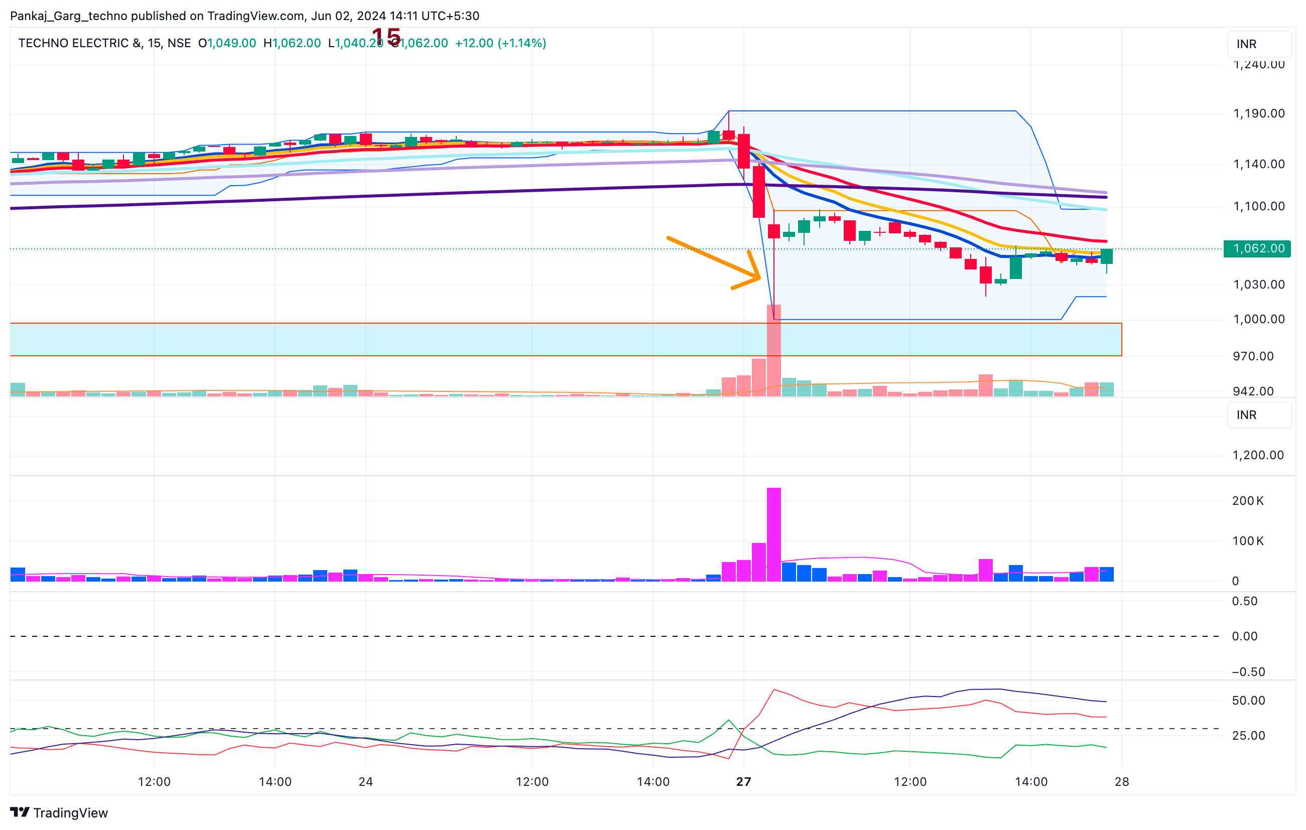 (iii) Technically there was respite on the shorter time frame (15 min charts) —Large lower wick on large volume indicating absorption of selling pressure.
