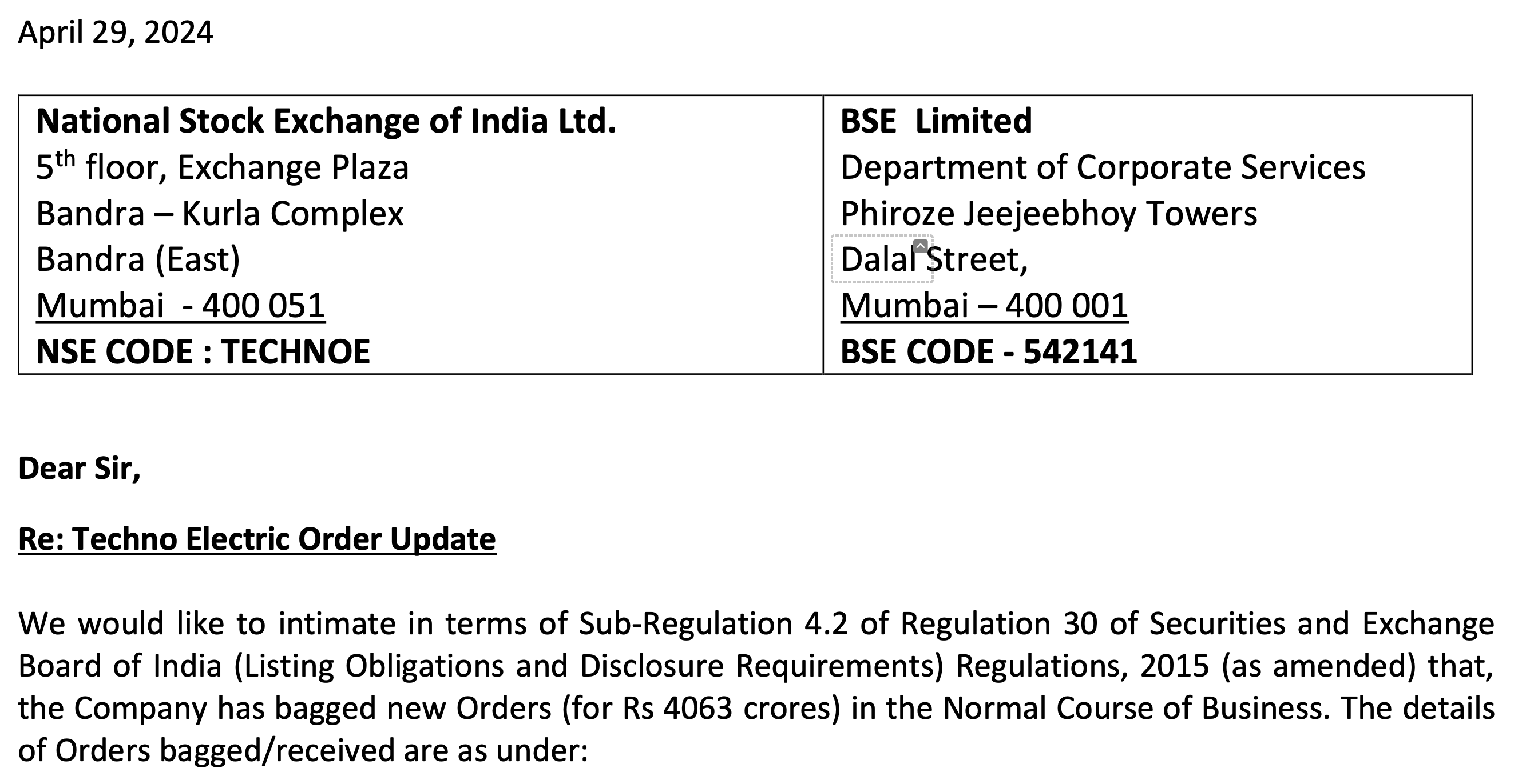 The company secured a big order - disclosed on exchanges on 29th April.