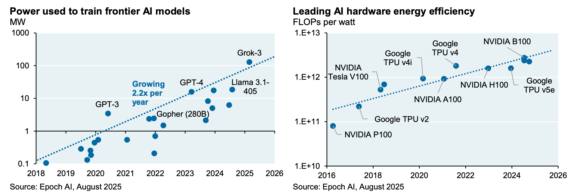 Falling unit prices, enabled by greater scale and efficiency, can spur even higher consumption. By 2030, training a frontier model could require 10^29 FLOPS and 4 – 16 GW of power