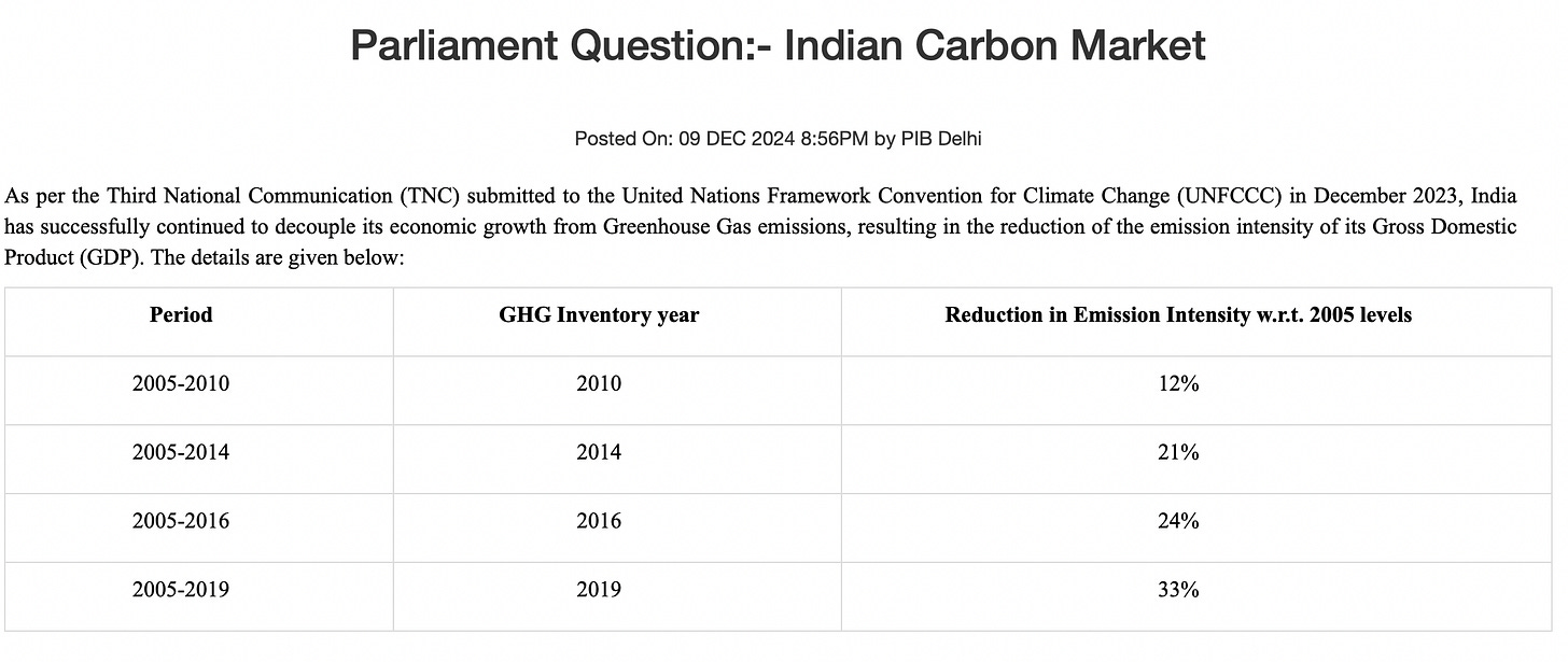 Between 2005 and 2020, India’s emission intensity of Gross Domestic Product (GDP) reduced by 36% as against the NDC target of 45% to be achieved by 2030. (Link)