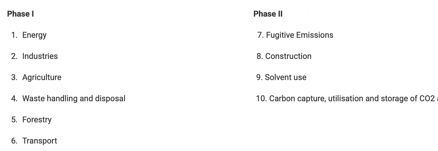 Following sectors are proposed to be included in the offset mechanism in a phased manner: