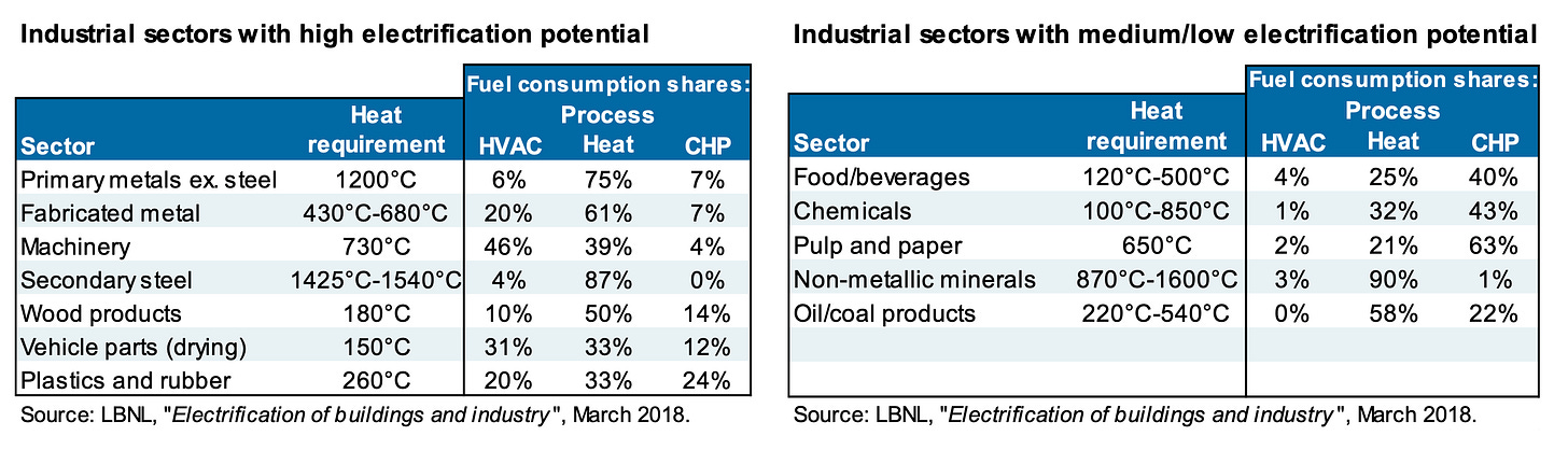 Industries by electrification potential