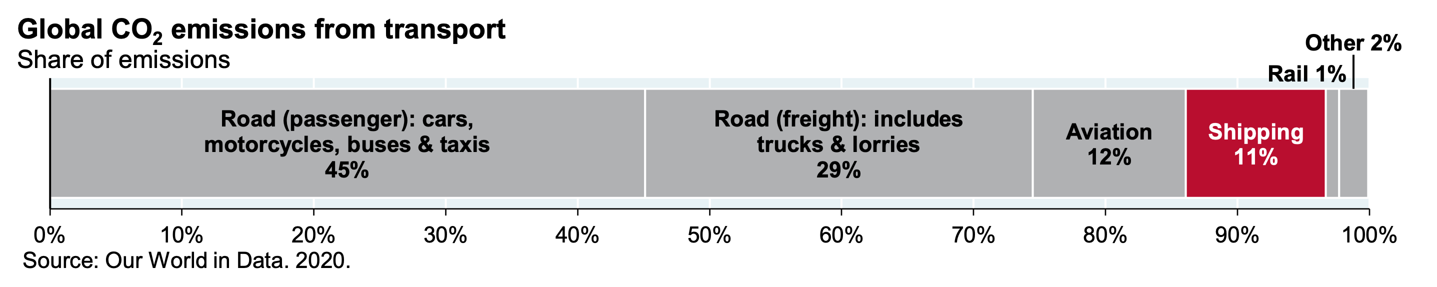 Fossil fuels mostly drive transportation. Rail which accounts for only 1% of the transportation is the most electrified mode of transport. While it is difficult to electrify aviation and shipping soon - electrification of road transport is not that far (EV adoption).