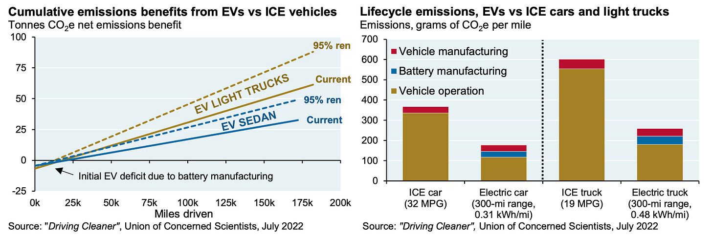 Initially, electric vehicles do have an emission deficit; but cumulatively the benefits far outweigh. The benefits will be even better when the grid is comprised of 95%+ of renewable energy.