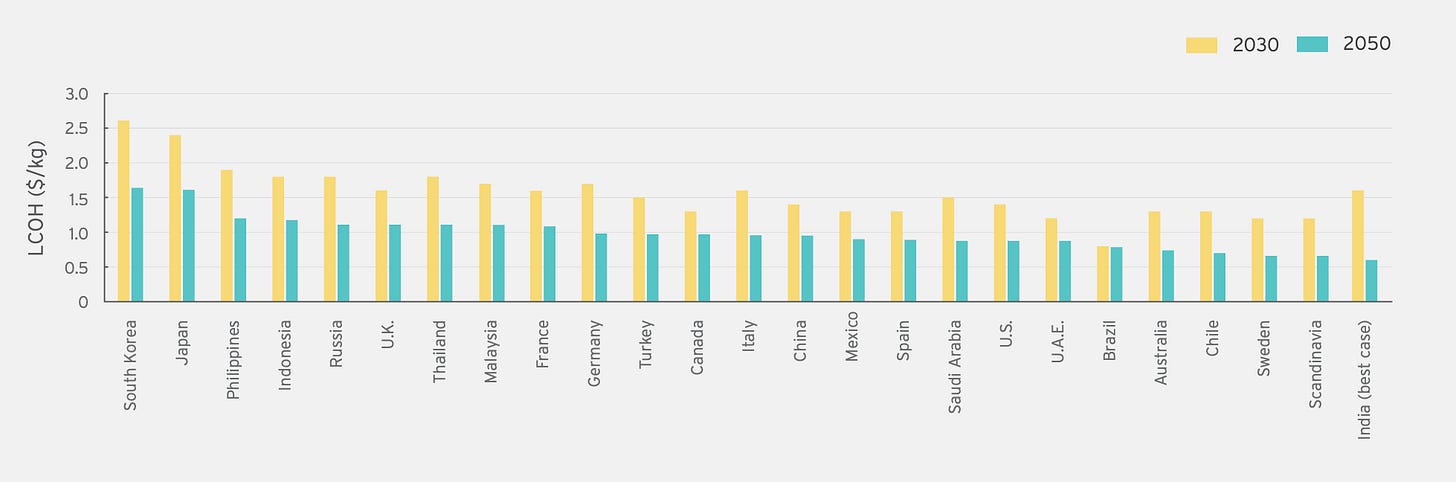 I intentionally leave out the technical aspects of these technologies. The bottom line is that the electrolyser costs have to go down substantially before Hydrogen is commercially viable.Transportation & Storage