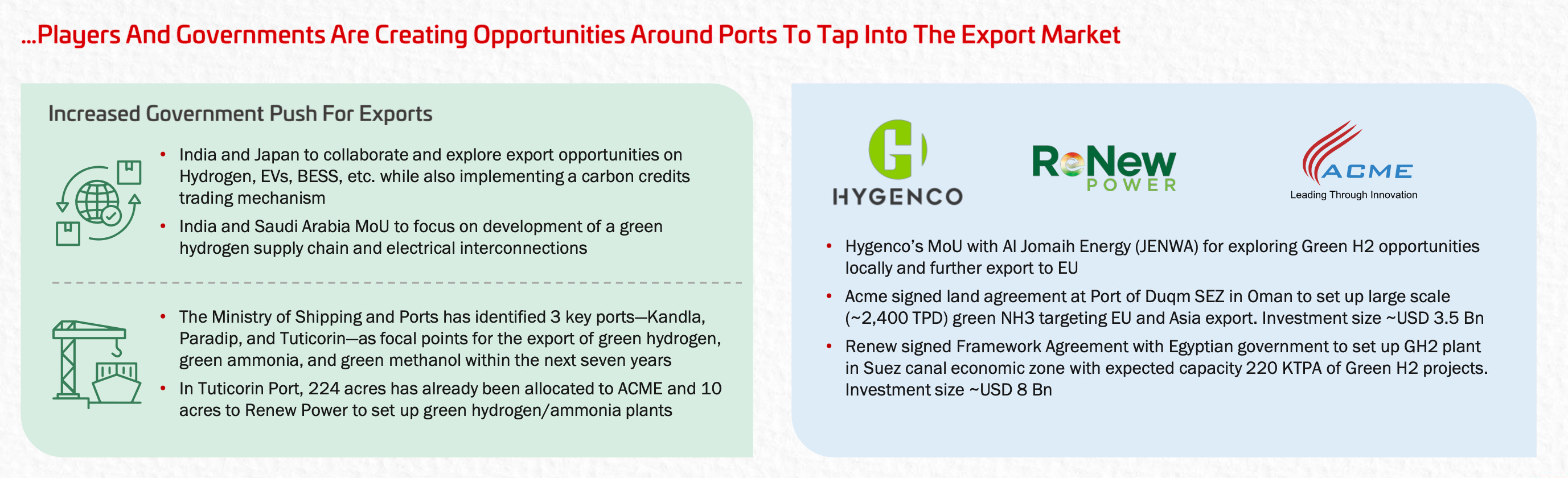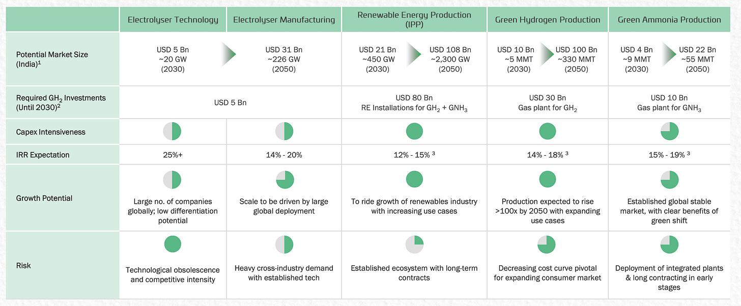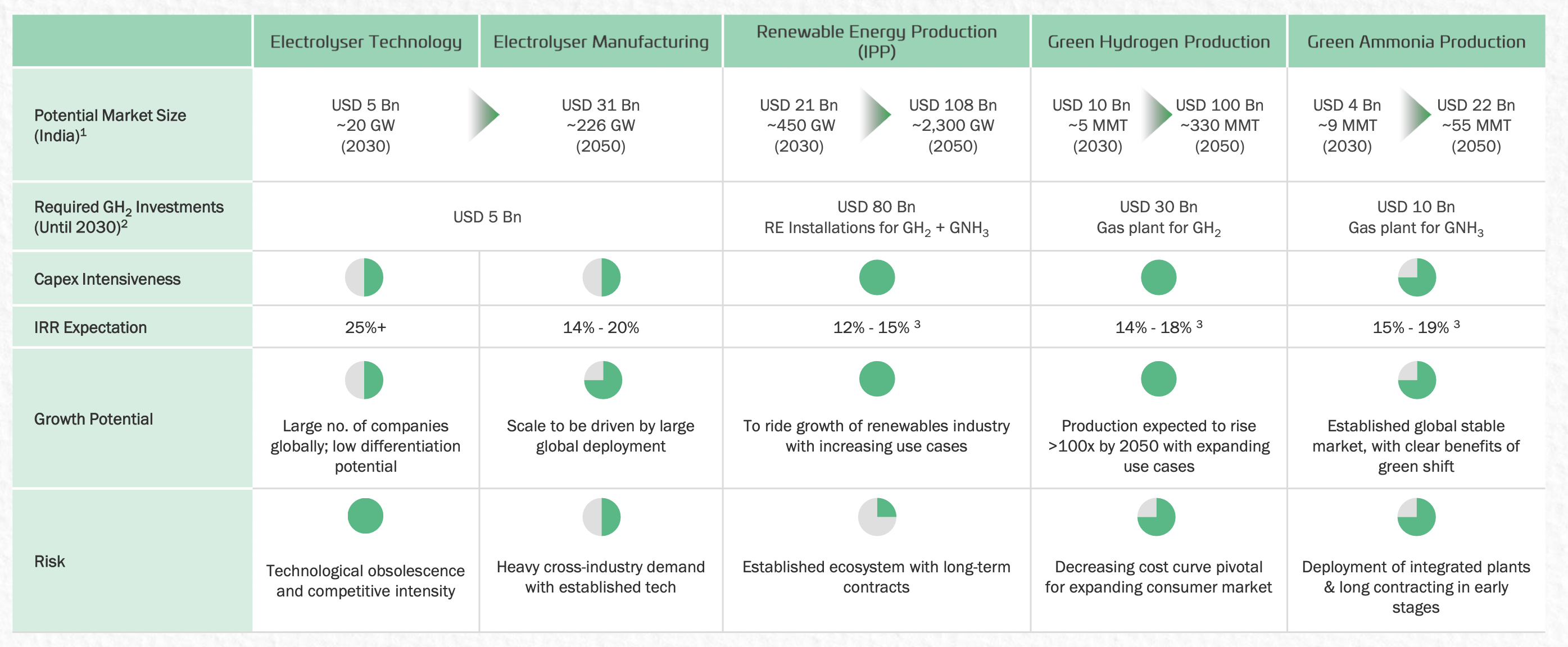 As per Avendus estimates, ~USD125 billion is expected to be invested in the Green Hydrogen and Green Ammonia segments in India by 2030.