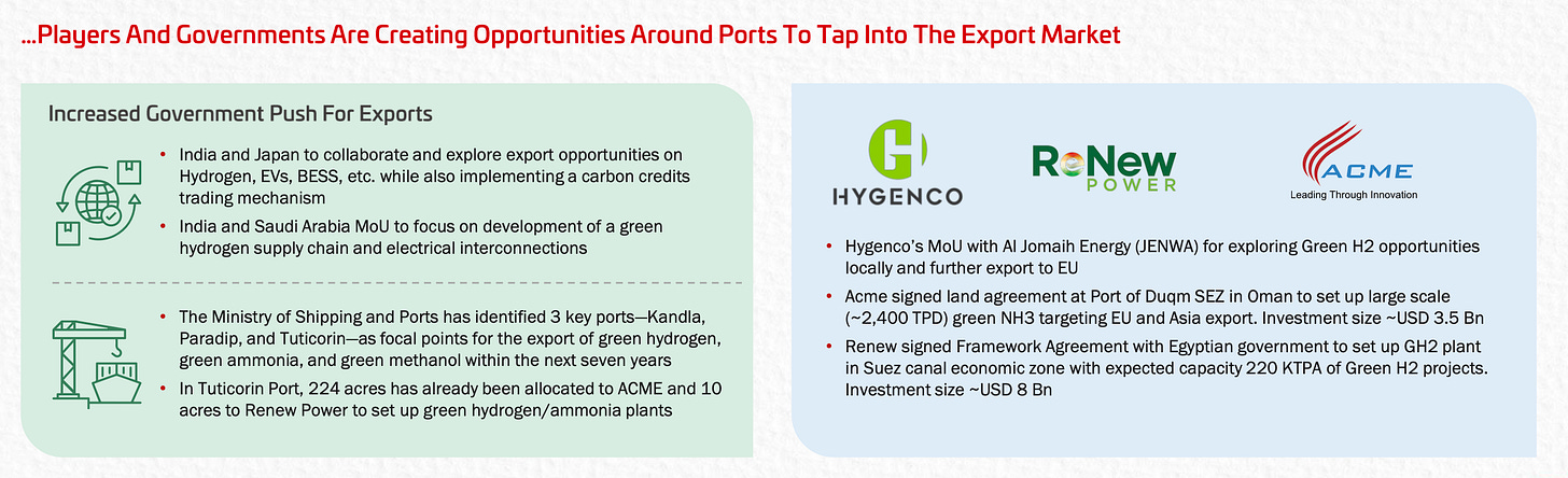 As I discussed in the last post, there is a focus on electrification and decarbonization. Green Hydrogen has the potential to decarbonize core industrial sectors which can’t just be electrified eg Ammonia, Iron & Steel, Chemicals, etc. Further, it has the potential to solve the immitency issue of other renewables as a reliable energy storage platform.