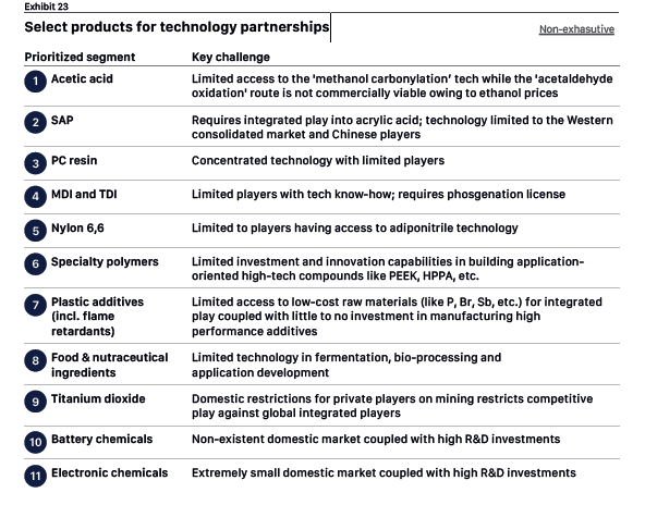 So for opportunities looking for companies increasing capacities, going downstream, introducing new products, import substitution and tie-ups for technology or development of technologySome of the products where technology partnerships are being sought - potential areas of focus