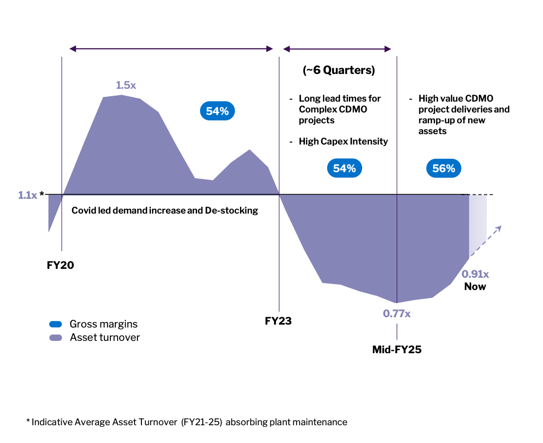 CDMO is a lumpy business - given the size of investment in the past - the capacity utilisation recovery might not be linear