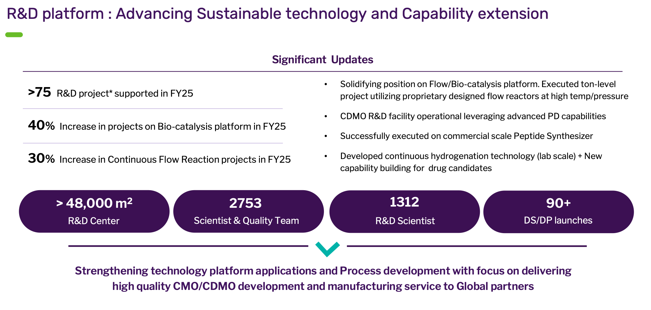 The key growth driver is CDMO R&D Focus