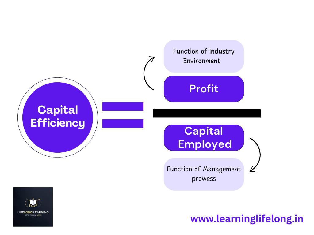 Capital efficiency has two parameters. Profit is the numerator which depends on the industry environment and Capital Employed is the denominator which is largely the management’s job to allocate capital.