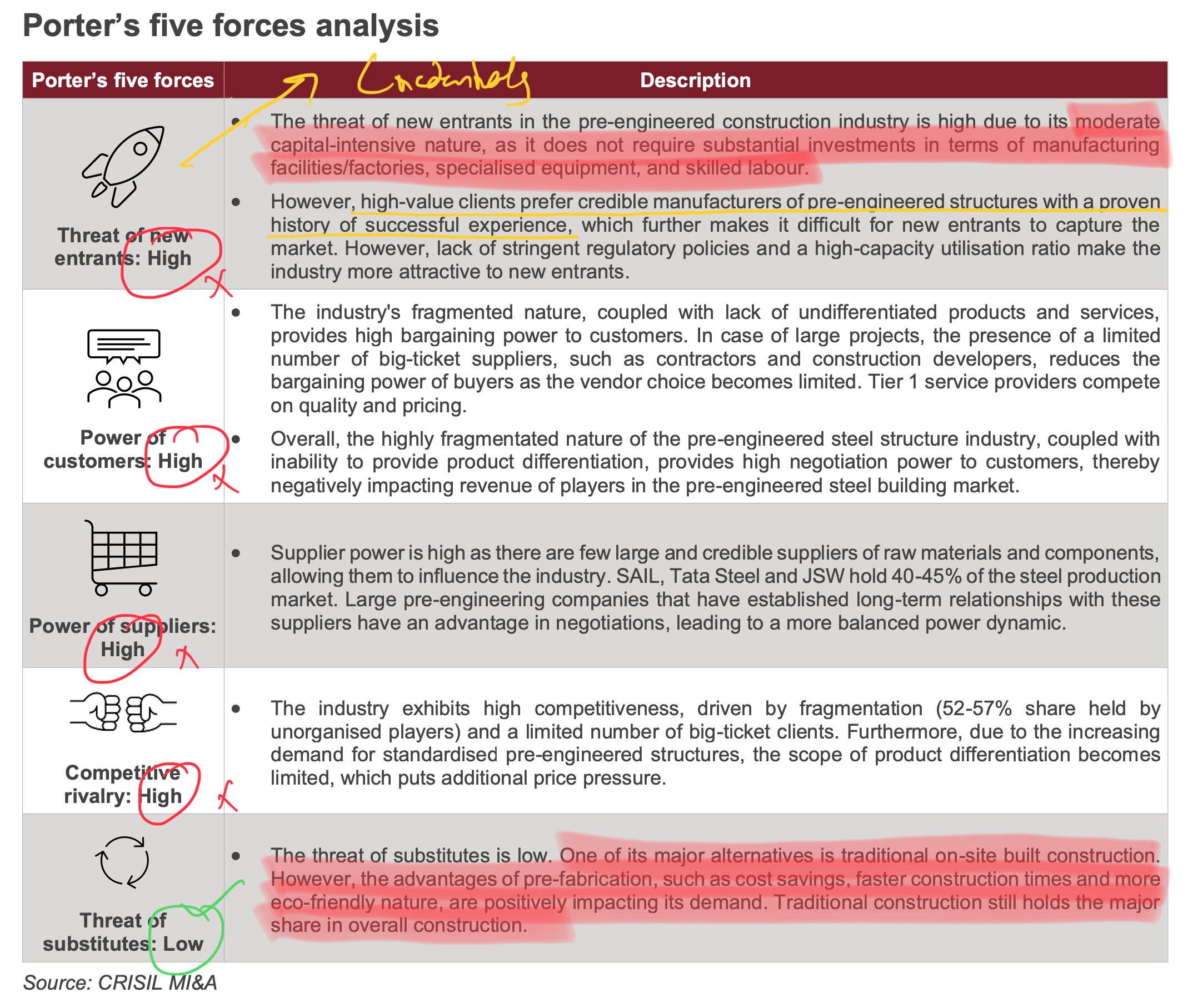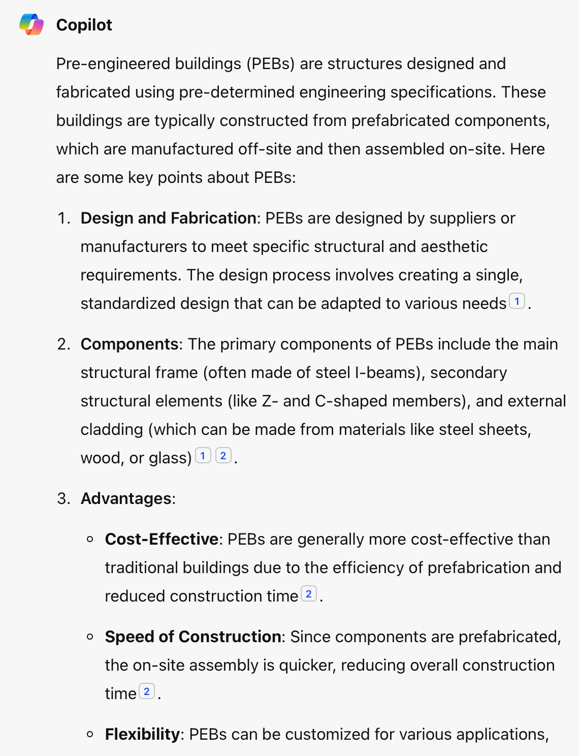 So far my takeaway is that the USP in this Industry is designing prowess and operations (delivering on time). Delay in execution can lead to increased exposure to commodity pricing, a penalty from the customer, increased working capital, etc. PEB is a subset of the Construction Sector.