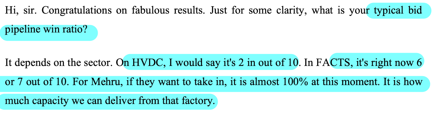 As far as Quality Power is concerned, they supposedly are doing well in FACTS with a strike rate of 60%-70% in winning bids.