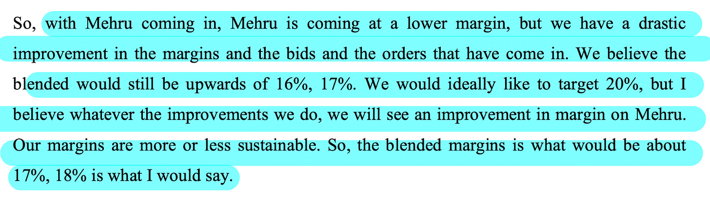 6X growth in 4 YearsMargins: Blended margins expected in the range of 16-17% - The Mehru acquisition will lead to revenue growth at the cost of reduced margins compared with the standalone Quality Power Business