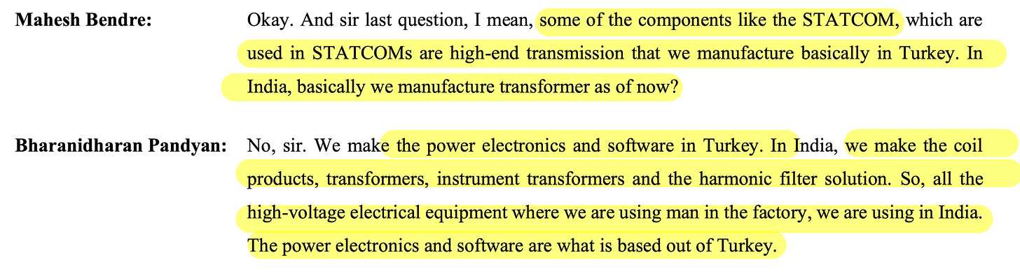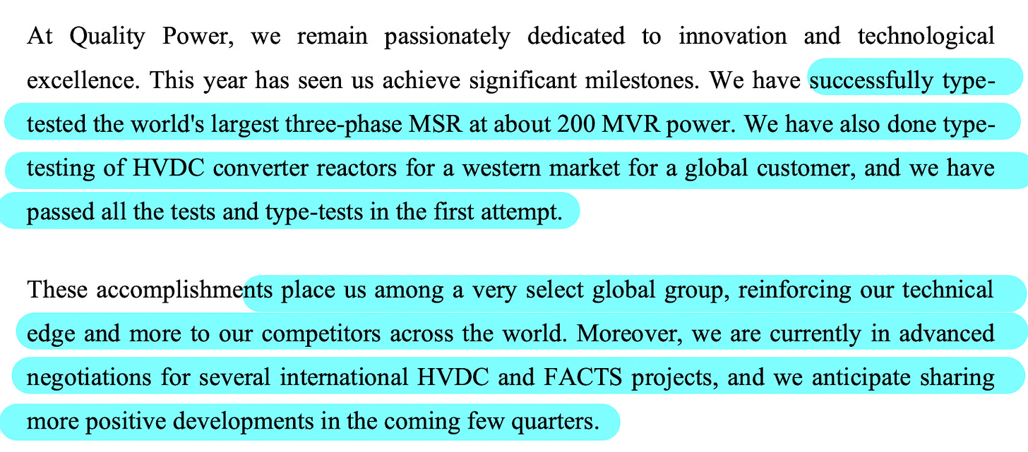 The Turkish operations are very important for Quality Power as they do a lot of international business through Turkiye and execute products at the top end of the value chain there.