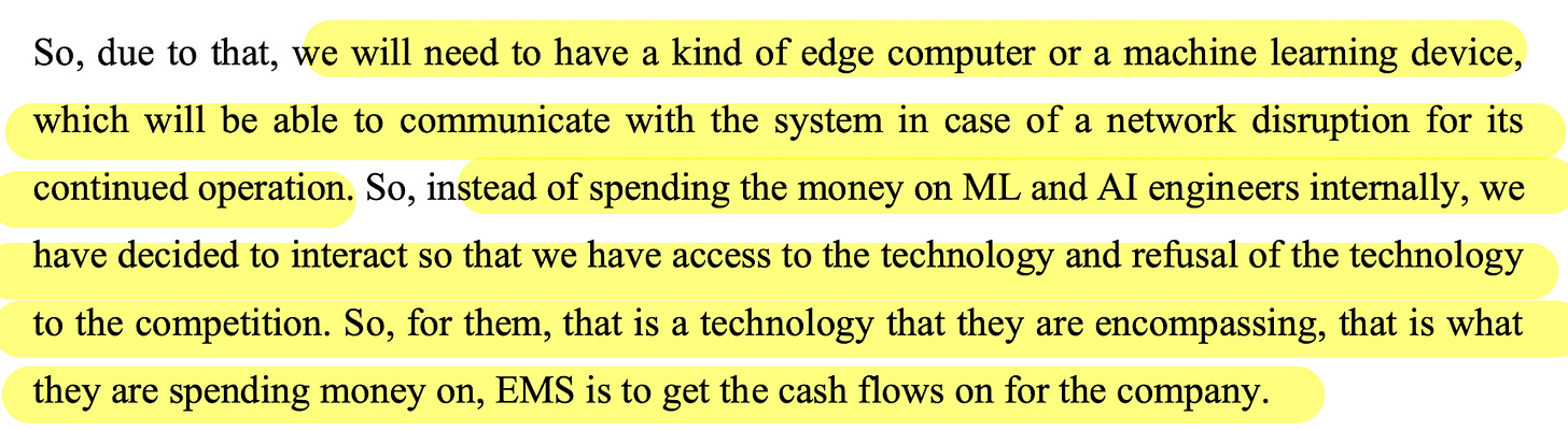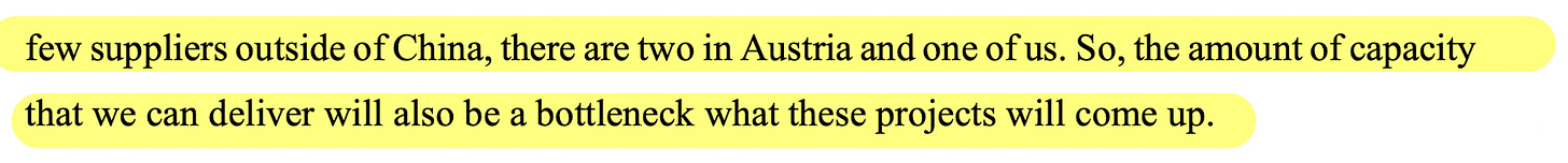 Just thinking out loud, given the current tight supply-side conditions, the customers (other capital goods companies) can also look at integrating backwards. The same has happened in other industries as well from time to time.
