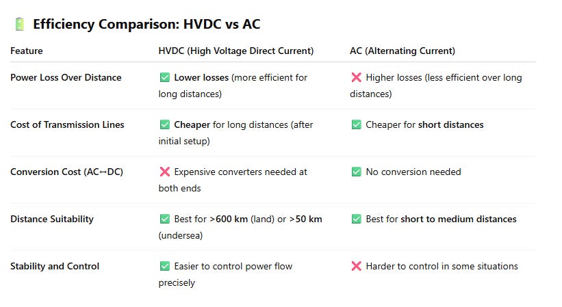 HVDC is more efficient - (1) Long Distance Transmission (2) Connecting different grids whose frequency is not the same (3) Undersea transmission (between countries)Quality Power has 4 products that go into HVDC i.e. reactors, line traps, instrument transformers and medium-voltage oil-filled transformers (for special applications, like zigzag-connected earthing transformers).