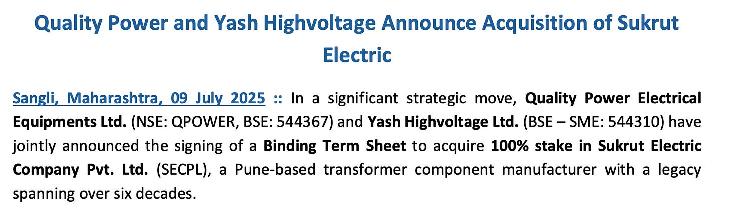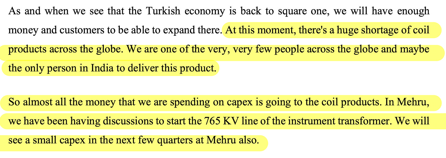 Their products might be going into the final products of Electric Capital Goods Players. So, in a sense, Quality Power is a second-order player in Electric Capital Goods.