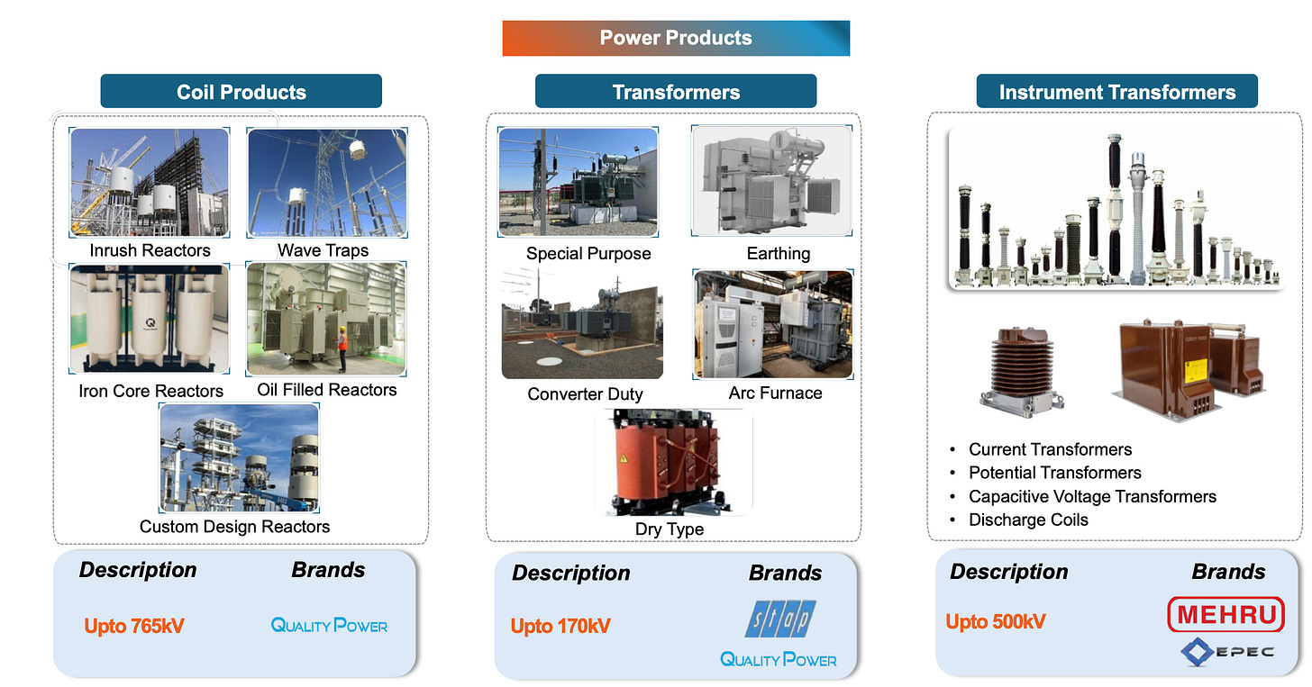 Manufactures High Voltage Power Products (Coils, Transformers and Instrument Transformers) and Power Quality Products (Static VAR Compensators, STATCOMs and Harmonic Filters, Capacitor Banks and Shunt Reactors)