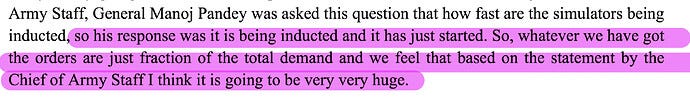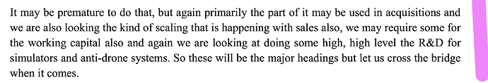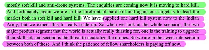 (3) Business to be looked at on a full-year basis. Don’t focus on Quarterly gyrations. Product mix may change and execution could be lumpy. Have healthy enquiries for both their businesses i.e. Simulators and Anti Drone