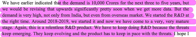 Well, management is confident. They expect more and more orders, especially from the Indian Army. They are targeting import substitution and this is what the government's priority is.