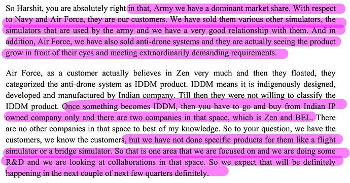 (1) BEL does many other things so ADS will be one segment of what they do. However, for Zen, this is a focus area. So the development and edge Zen can have in this space are higher.