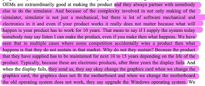 Simulator induction is at a nascent stage + new platforms will require simulators