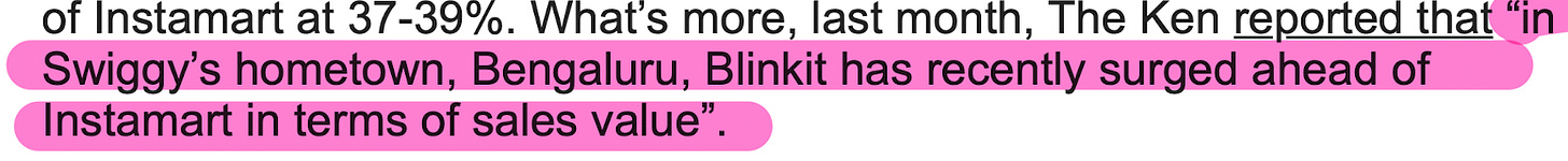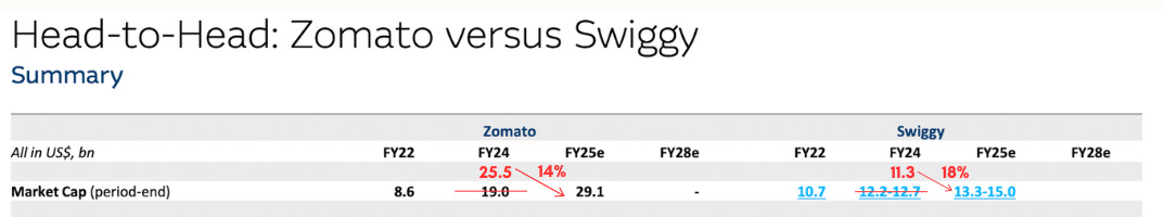 I know this might be flawed and biased logic, given its dependence on a brokerage report. However, the business metrics of Zomato and Swiggy are very different. Swiggy has been losing market share even in the food business and is 4-6 quarters behind. In the current scenario, given the rising competition, the pace of growth is of the essence.