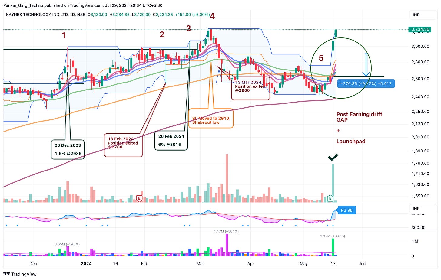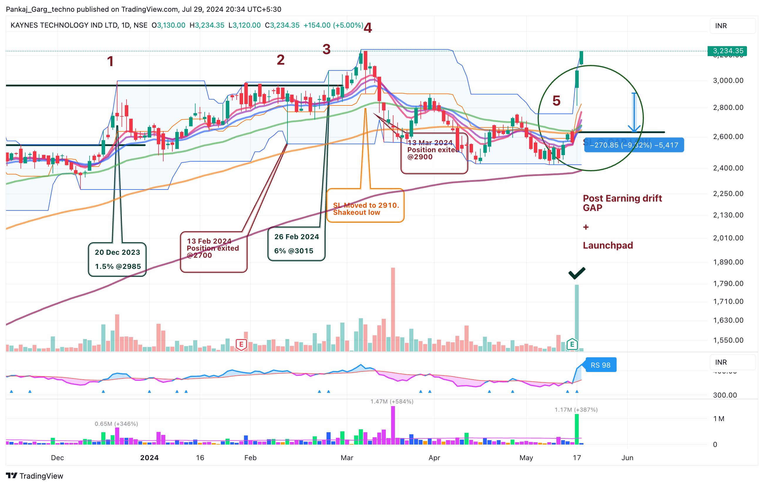 This is essentially a launchpad setup whereby the Moving averages converge and stock opens gap up. Here it was triggered by the results and hence it is Post Earning Drift as well.