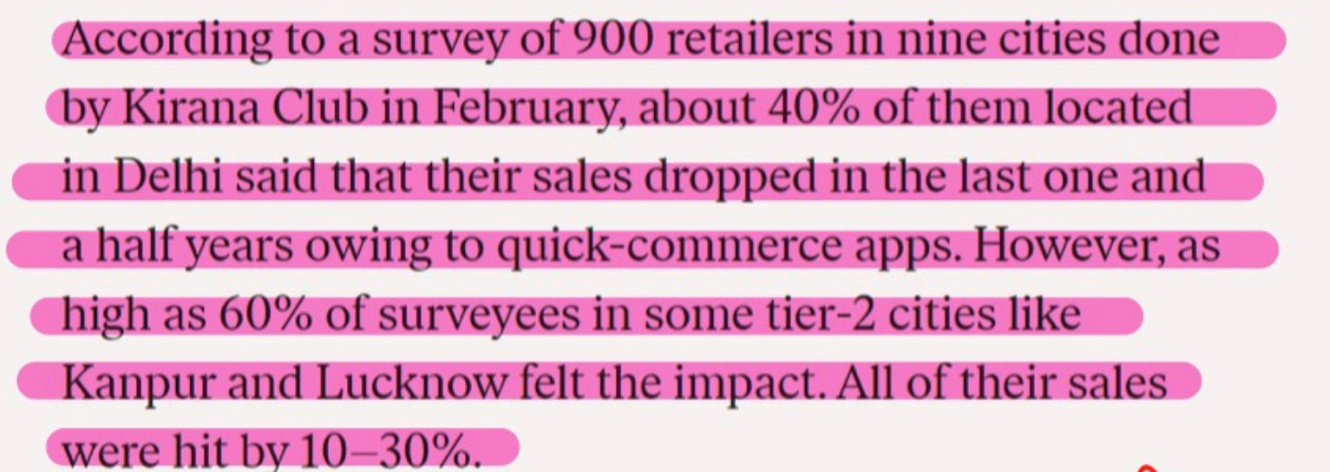 (2) Quick Commerce is targeting the very moat of Kiranas. Proving to be a more convenient mode of shopping.