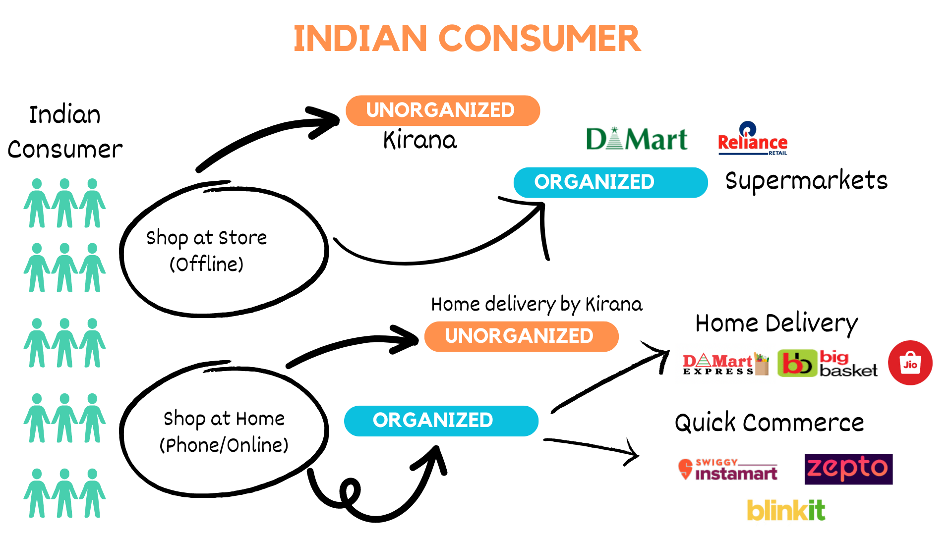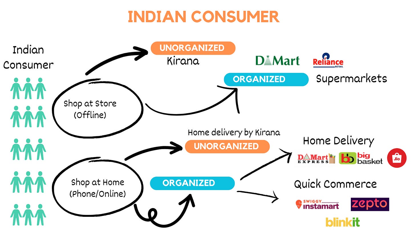 India offers a myriad of choices to shop. On one end of the spectrum is a largely unorganized sector, “The Kiranas or the Mom-and-Pop Stores”. On the other end is the organized sector burgeoning with different offerings like discounts, choice, convenience, home delivery, etc.
