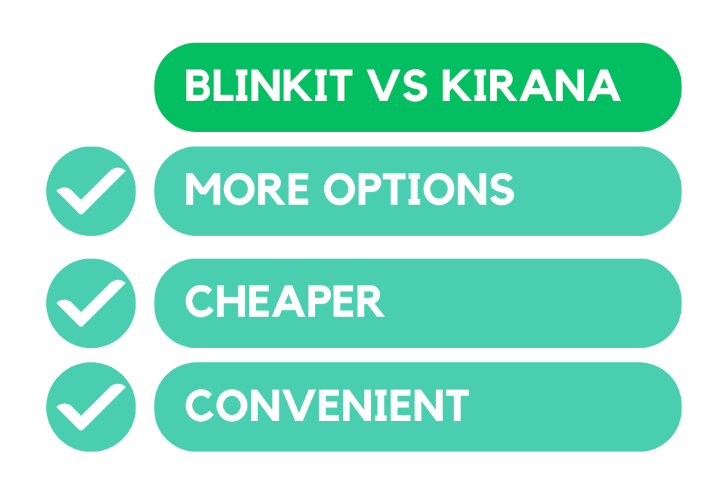 Cheaper: While at Kirana stores especially in the urban setting, there is minimal or no discount, the goods are cheaper at Blinkit with the discounts offered. 10%+ discount on Blinkit and other organized retail formats, stemming from a better supply chain
