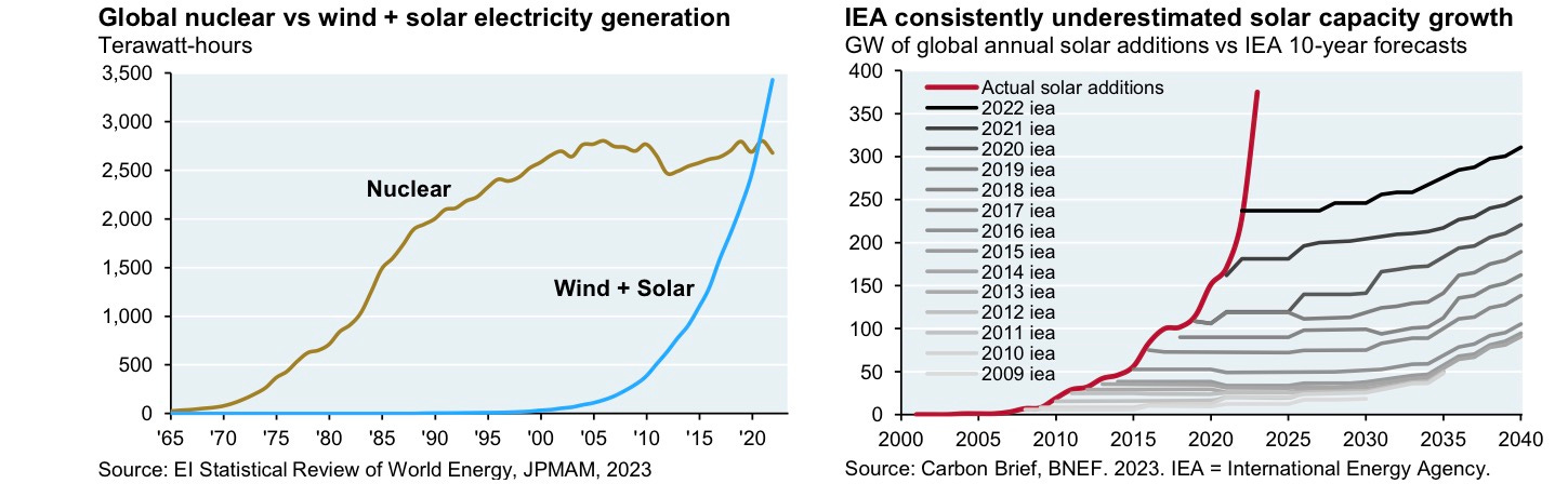 What Nuclear energy had achieved in 40 years (1965-2005), Wind + Solar has surpassed that in 20 years.