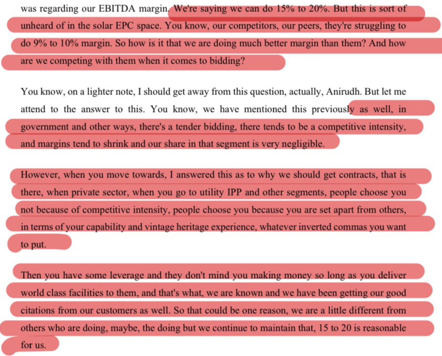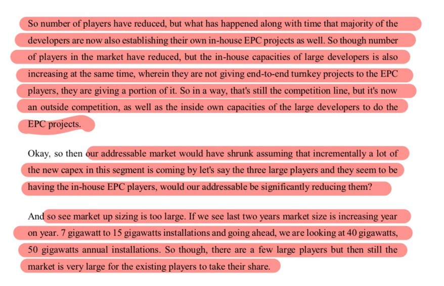 At this stage, this is a moonshot. Till the company exhibits some progress in this business, as an investor we should focus on the solar part of the story and be open about how the hydrogen space evolves for the company
