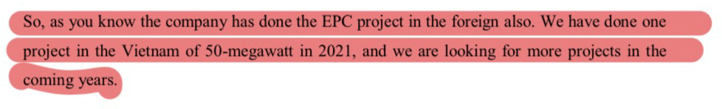 Aim to tap the growing renewable market, not only solar but Solar+Storage, Solar + Wind (no project yet), Hydrogen (got a pilot project but execution to be seen)