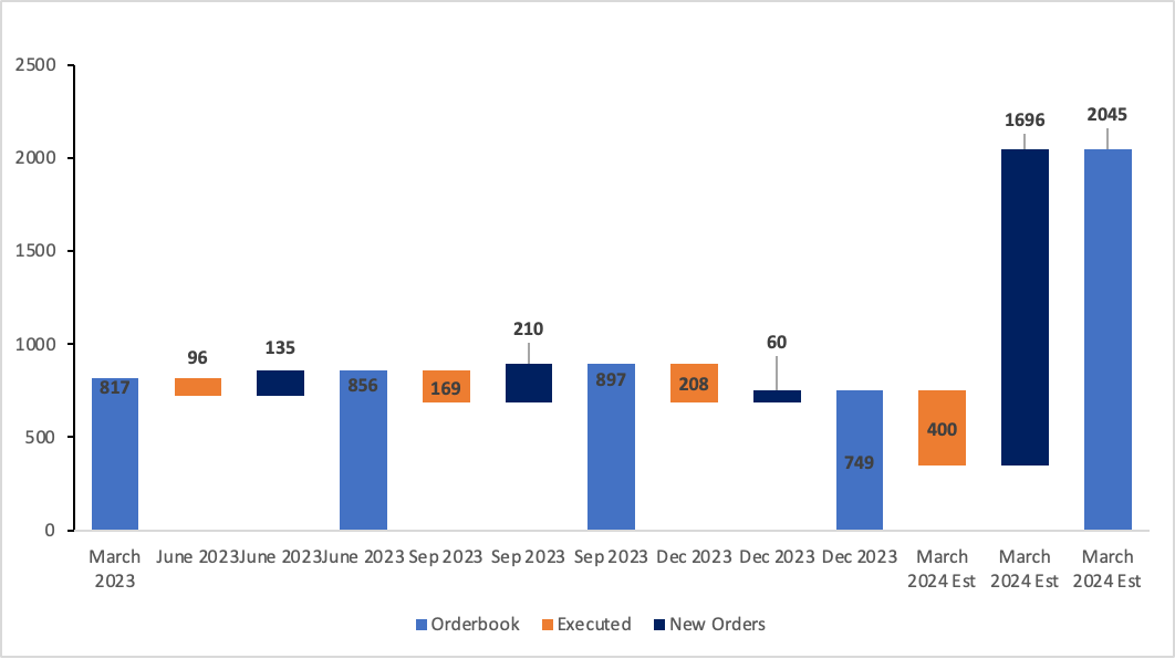 Orderbook is expected to become 2.5X from March 2023 to March 2024.