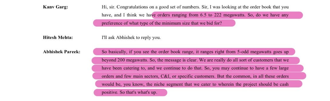 Focus is to get projects in all size categories from 5MW to 200 MW + based on its profitability