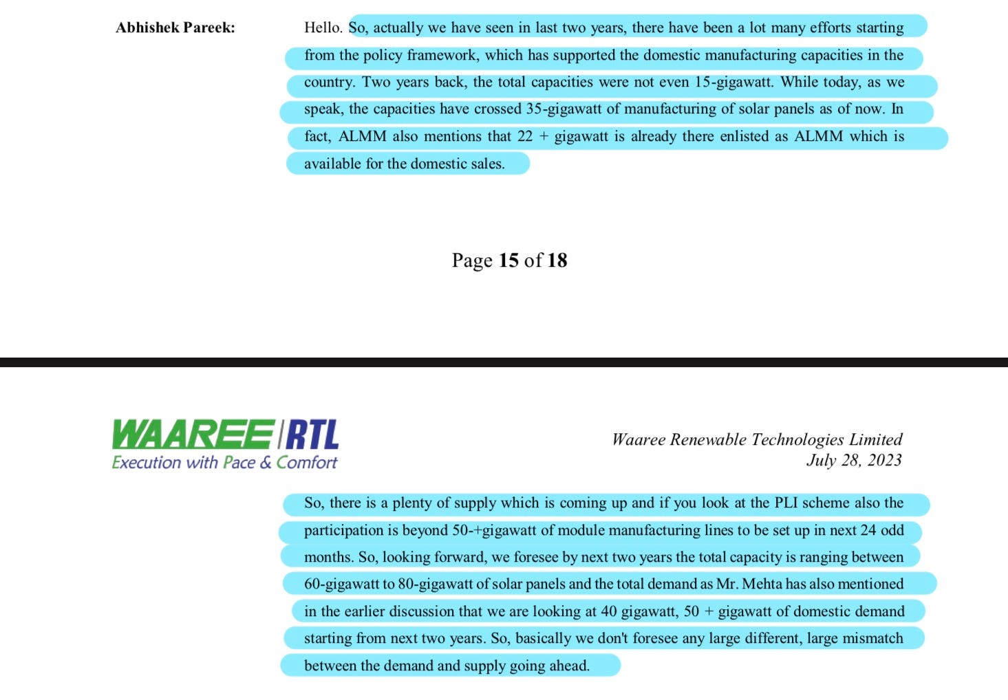 Waaree Energies Ltd. (WEL) - Parent Company - Engaged in manufacturing of Solar Modules - Not Listed; filed for IPO