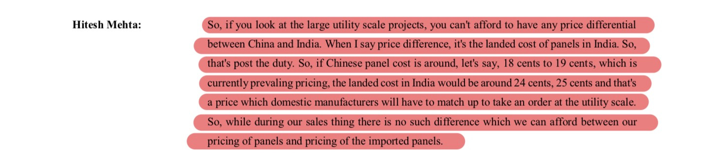 They also have the advantage of being part of a group that has upstream manufacturing capacities and hence capitalize on the captive Group availability of solar modules