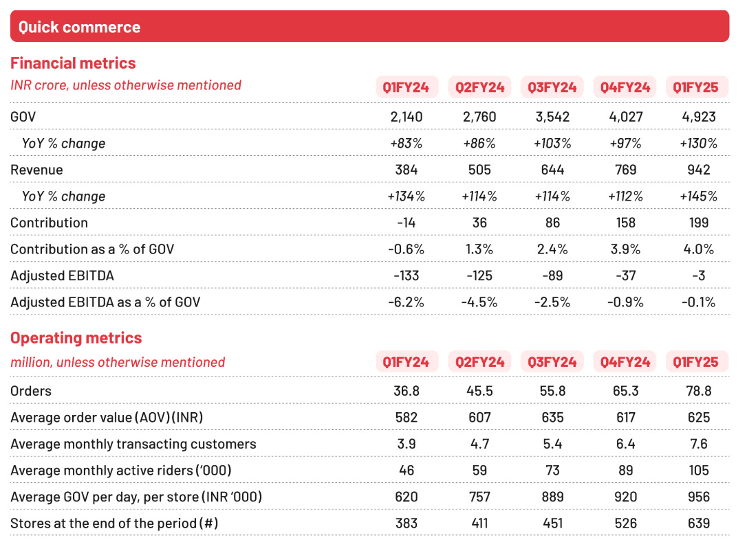 Competitive intensity in the quick commerce category has been high since the word ‘quick commerce’ was coined. Recently, some players have been spending more on marketing and subsidies. However, our customers, who value quality of service and reliability, seem to be unaffected and that reflects in our performance of the quarter, where we have grown 20%+ without the need to match the spends or subsidies of our competitors.